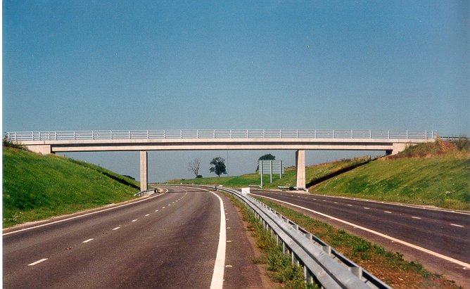 Lane Accommodation Bridge. Straightforward 3-span concrete bridge over the A50,