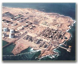the coast of Abu Dhabi in the Gulf. Oil and gas facilities with an LNG plant