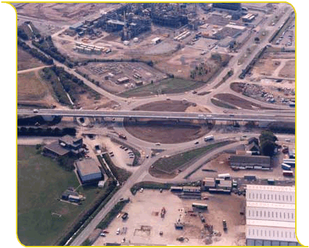 viaduct over a busy roundabout, next to the big BP works. Credit to the real