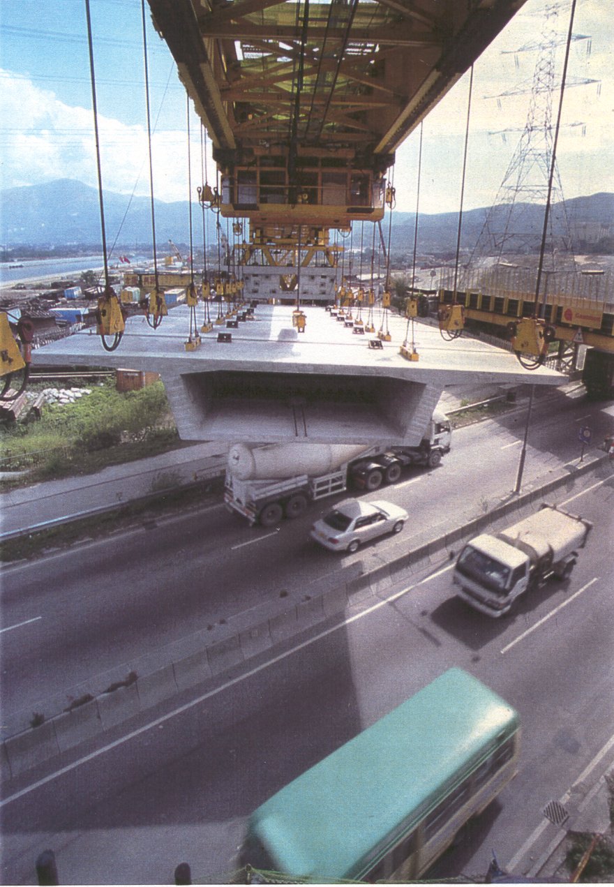 way of building a bridge deck - just hang it up there while you stress it all